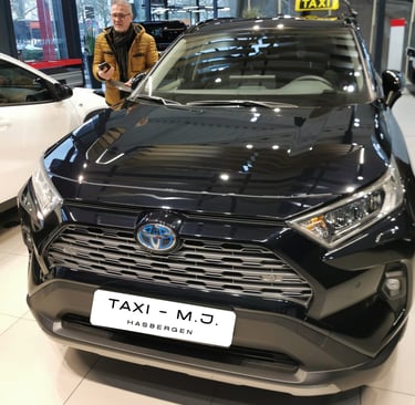 Wir sind stolz, Ihnen das neueste Mitglied unserer Flotte vorstellen zu dürfen: ein brandneues schwarzes Toyota-Taxi, das Stil und Komfort bietet. Dieses Fahrzeug wurde sorgfältig ausgewählt, um unseren Passagieren das bestmögliche Erlebnis mit einem sicheren und zuverlässigen Transport zu ihrem Ziel zu bieten.